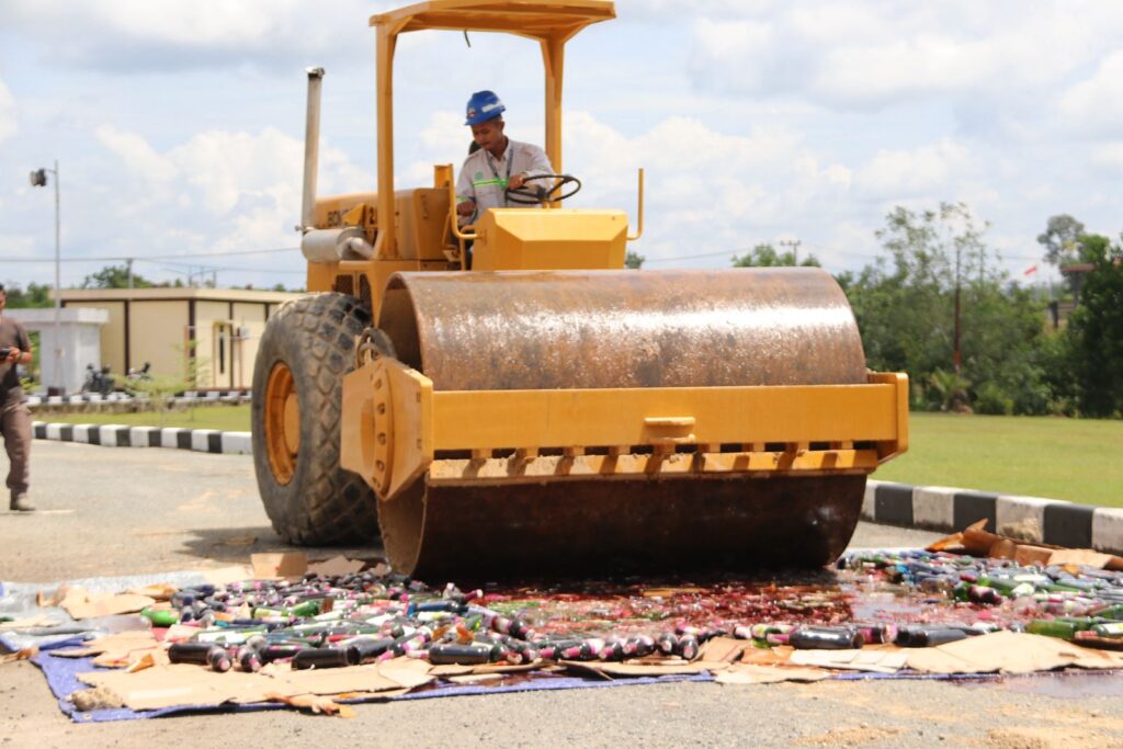 Pemusnahan barang bukti miras ini dilakukan dengan cara digilas menggunakan alat berat. Hal ini dilakukan untuk memastikan bahwa barang bukti tersebut tidak dapat digunakan kembali.