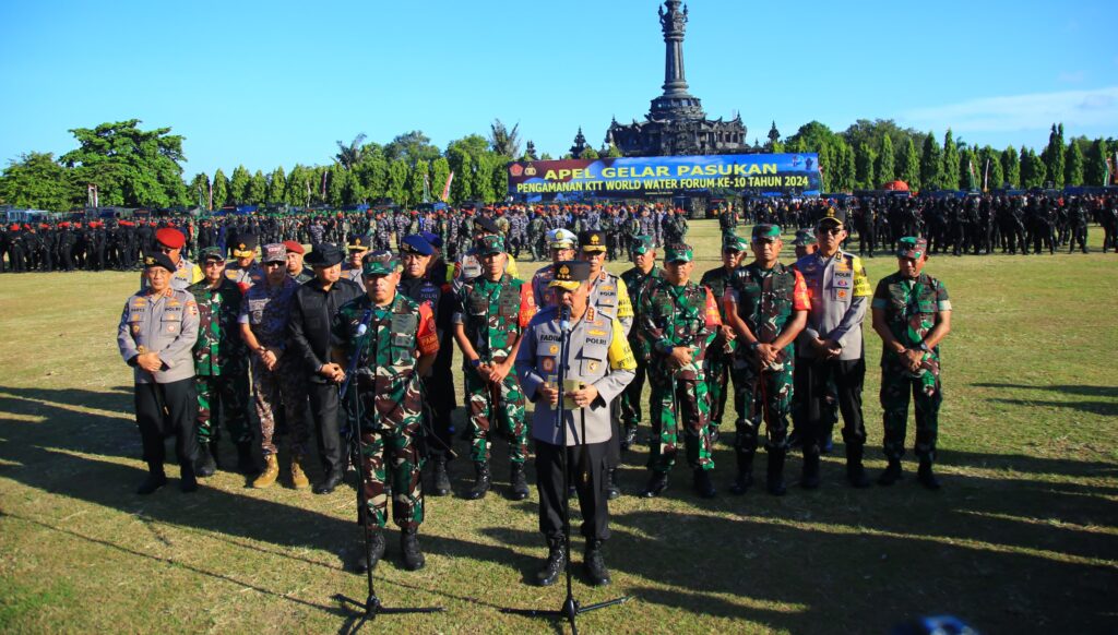 QUARTAL.ID – Ribuan personel TNI-Polri dikerahkan untuk mengamankan Konferensi Tingkat Tinggi (KTT) World Water Forum (WWF) ke-10 di Bali pada 18-25 Mei 2024. Apel gelar pasukan yang digelar di Lapangan Niti Mandala Renon, Denpasar, Rabu (15/5/2024) menjadi penanda kesiapan pengamanan berskala besar ini.