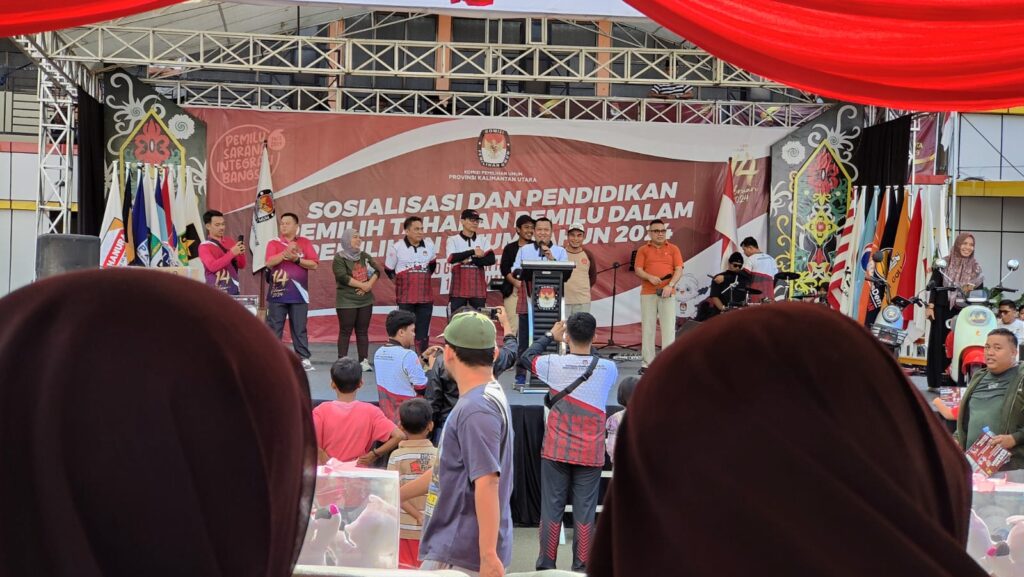 Pada Minggu (10/12/2023)nm di kawasan Tebu Kayan, Tanjung Selor, Kabupaten Bulungan, KPU Kalimantan Utara menggelar sosialisasi dan pendidikan pemilih Pemilu 2024.